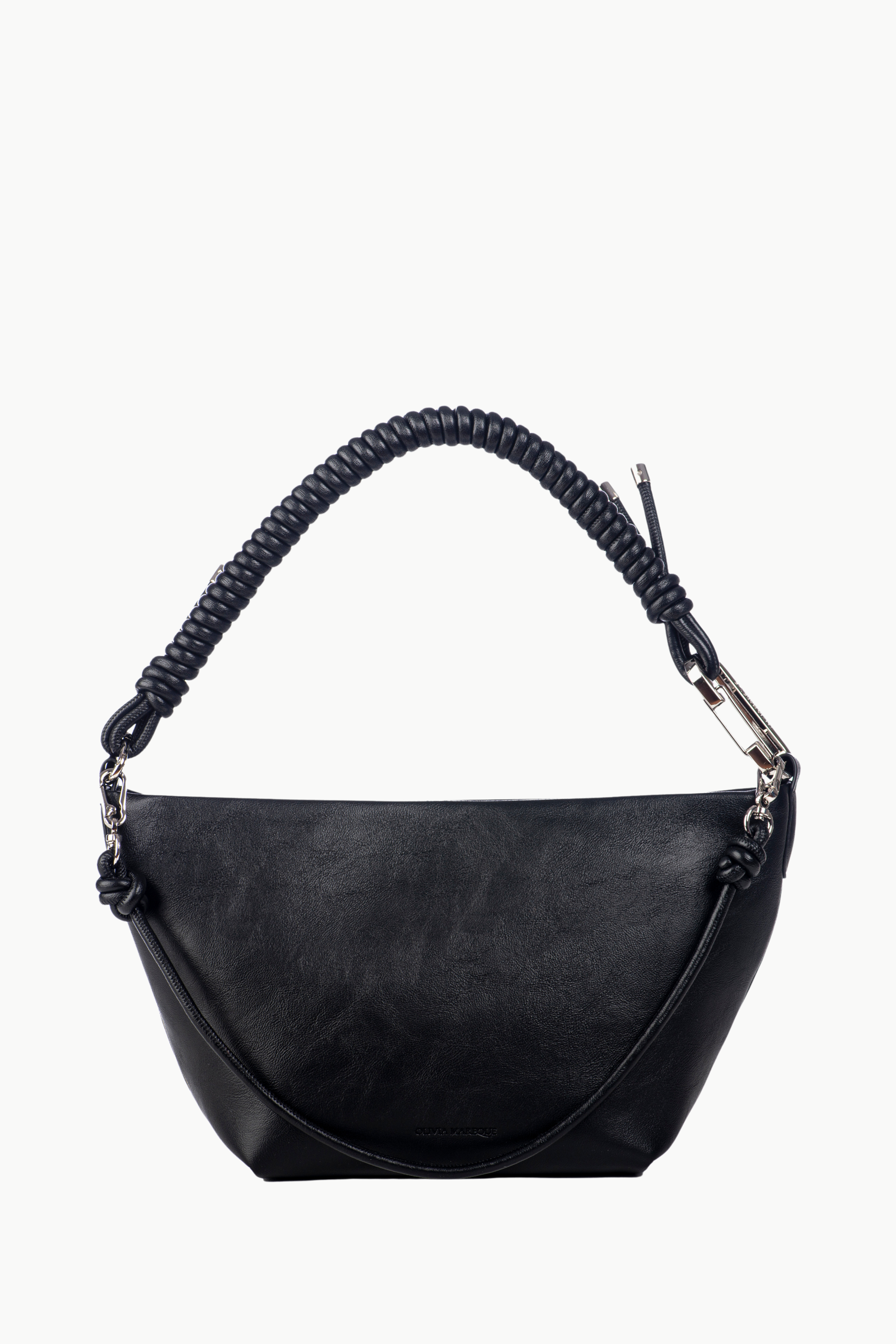 El bolso tiene dos cadenas, una cadena rizada y una cadena de nudo. La cadena rizada en un extremo está compuesta por un mosquetón metálico logotipado. En el interior tiene un bolsillo. Es perfecto para darle un toque sofisticado a tu look y llevar todo lo necesario.