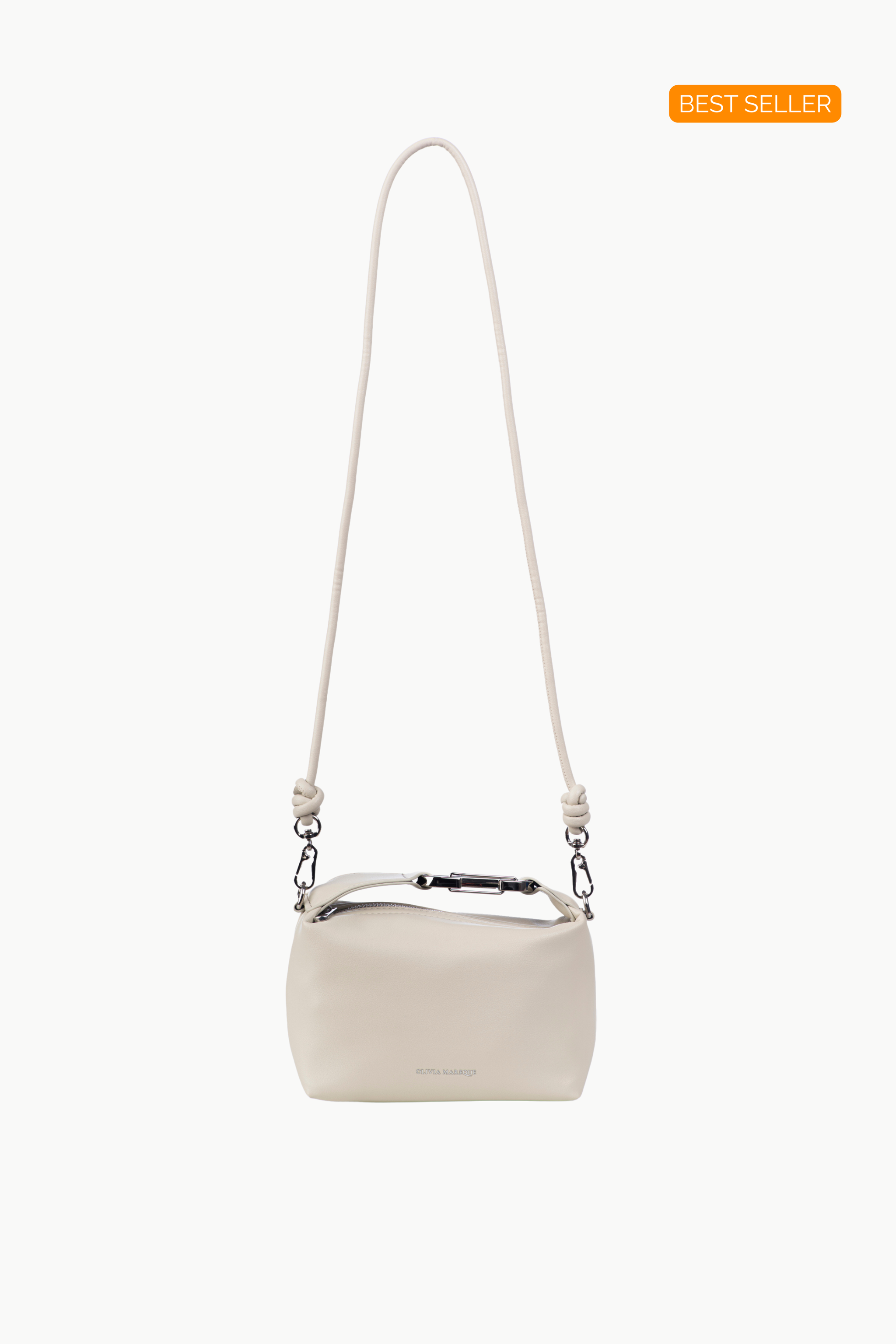 Small crossbody bag or handbag in off-white vegan leather.