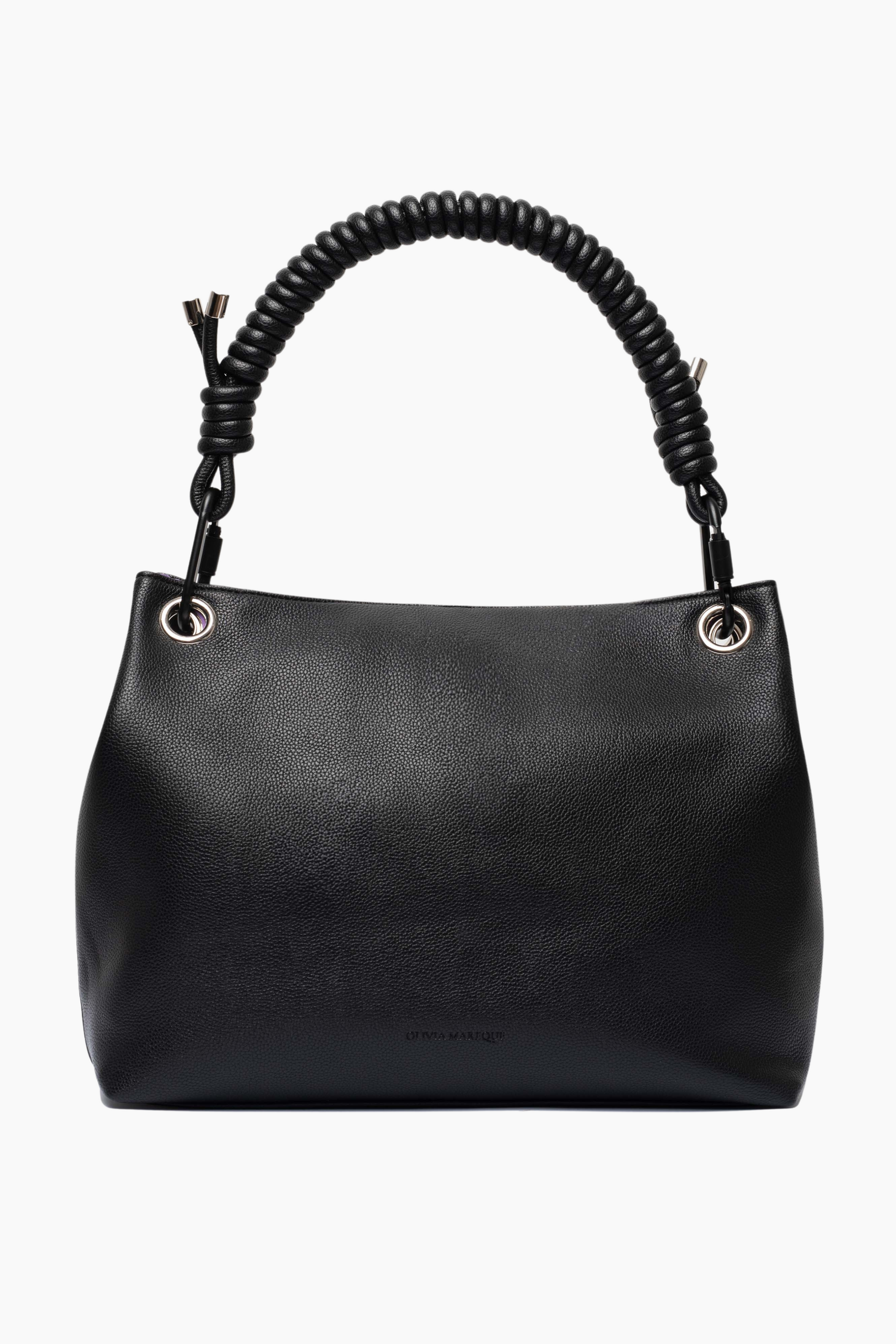 Large shoulder bag made with vegan leather in black. You have the possibility to choose between nylon handle, leather handle or both. Inside it has a zipper compartment. Its size is perfect to carry everything you need in your daily life.
