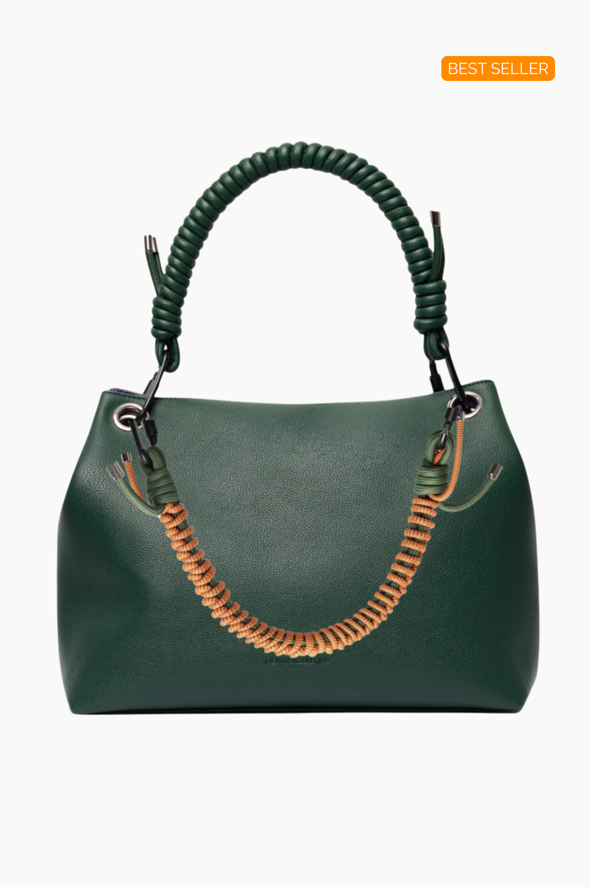 Large shoulder bag made with vegan leather in green. You have the possibility to choose between nylon handle, leather handle or both. Inside it has a zipper compartment. Its size is perfect for carrying everything you need in your daily life.