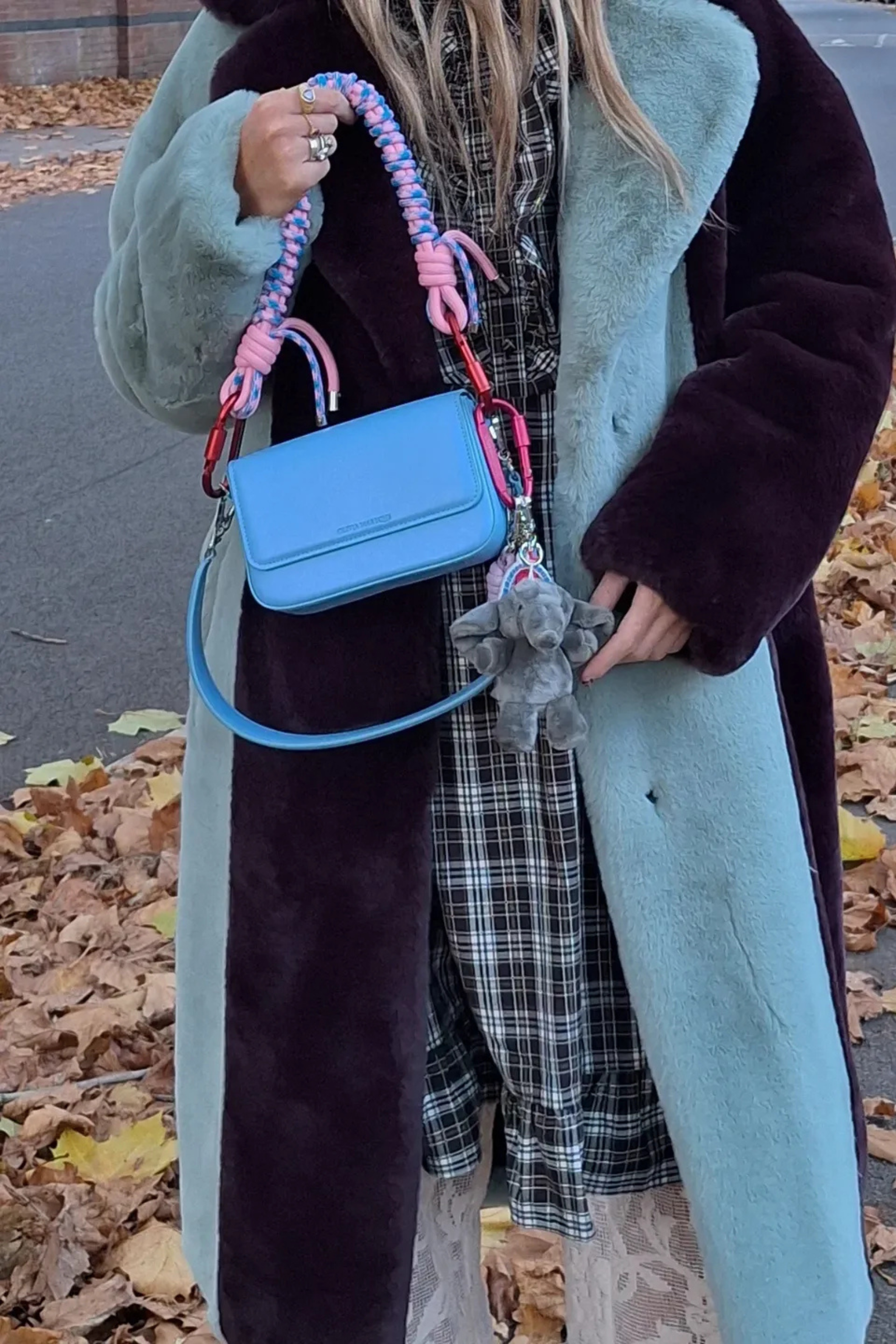 Includes PANTONE LIGHT BLUE with FLAT CHAIN + PINK AND BLUE NYLON SHOULDER CHAIN + ELEPHANT CHARM