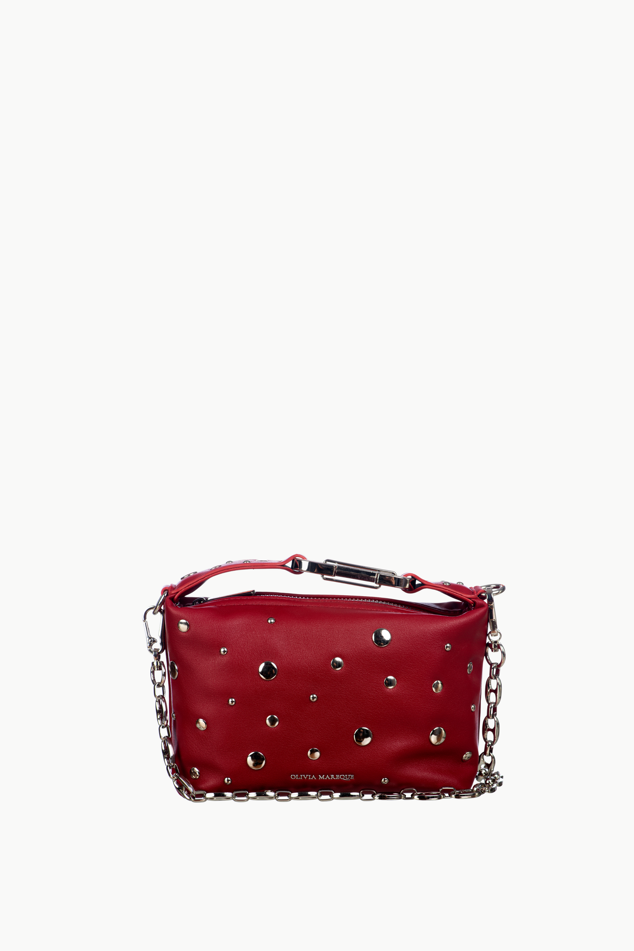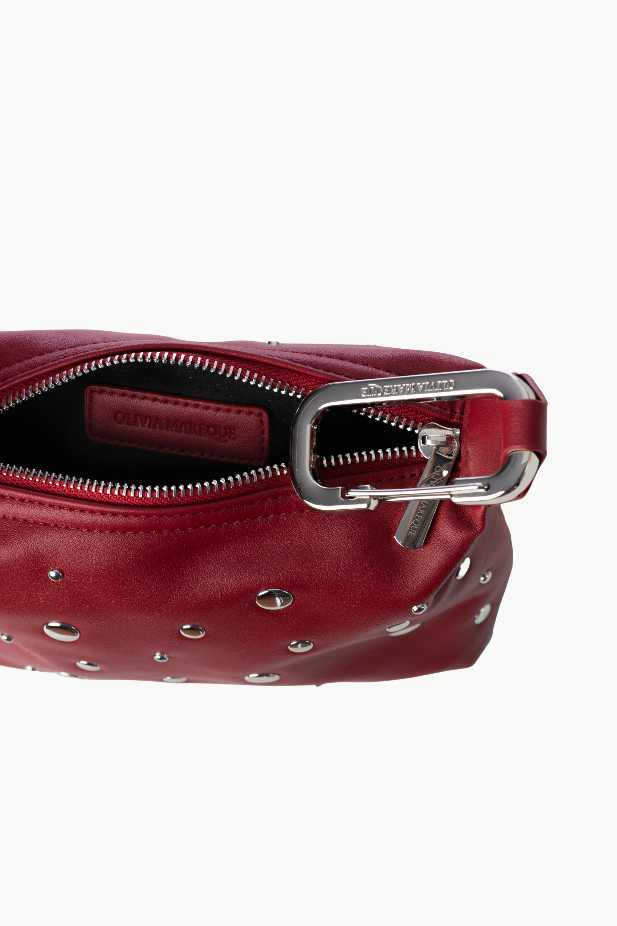 Un bolso pequeño y versátil que se adapta a cada ocasión: llévalo cruzado como bandolera, de hombro o de mano para un look más elegante. Su diseño en piel vegana granate con cierre de mosquetón metálico logotipado lo convierte en un accesorio sofisticado y con personalidad.