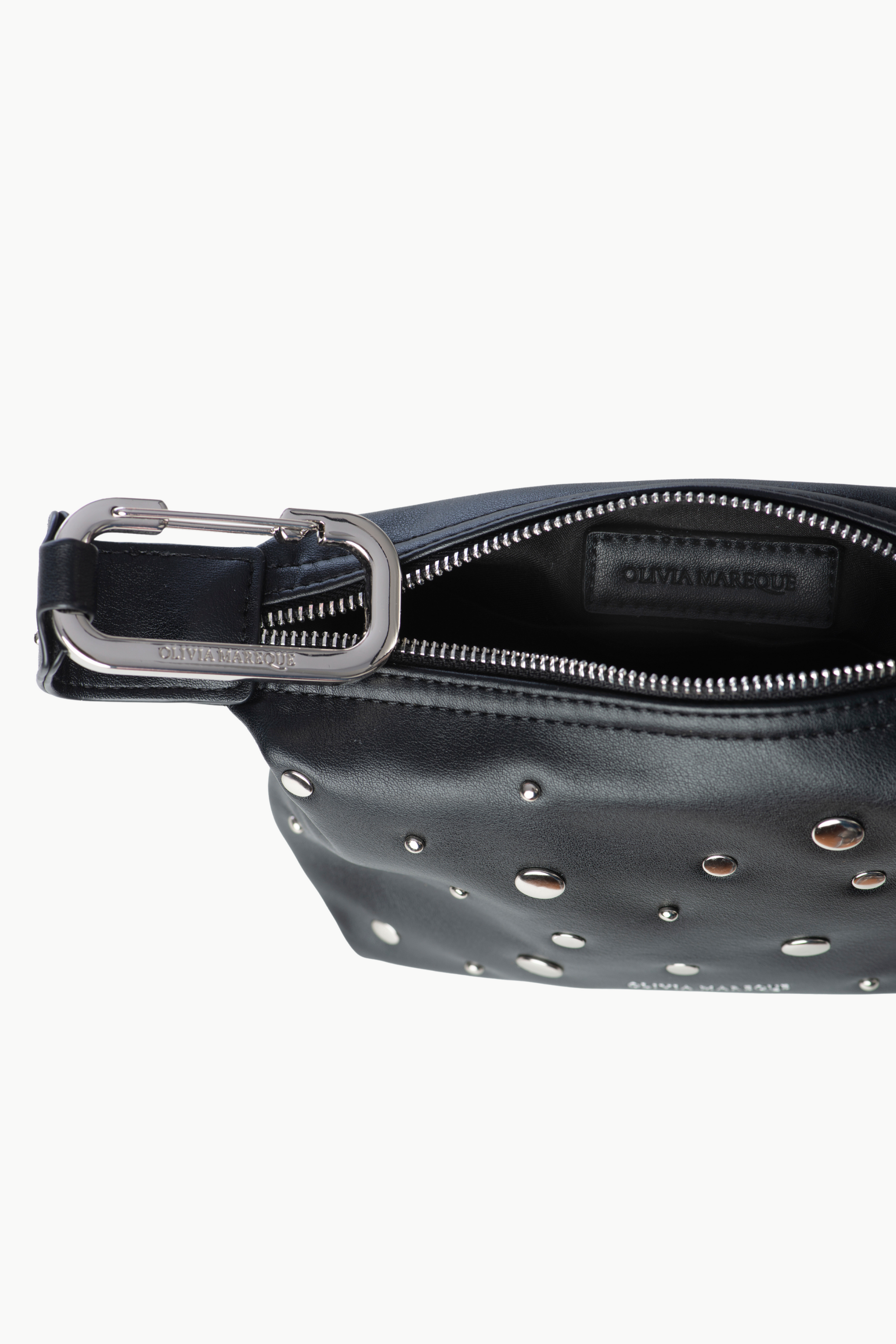 Un bolso pequeño y versátil que se adapta a cada ocasión: llévalo cruzado como bandolera o de mano para un look más elegante. Su diseño en piel vegana negra con cierre de mosquetón metálico logotipado lo convierte en un accesorio sofisticado y con personalidad.